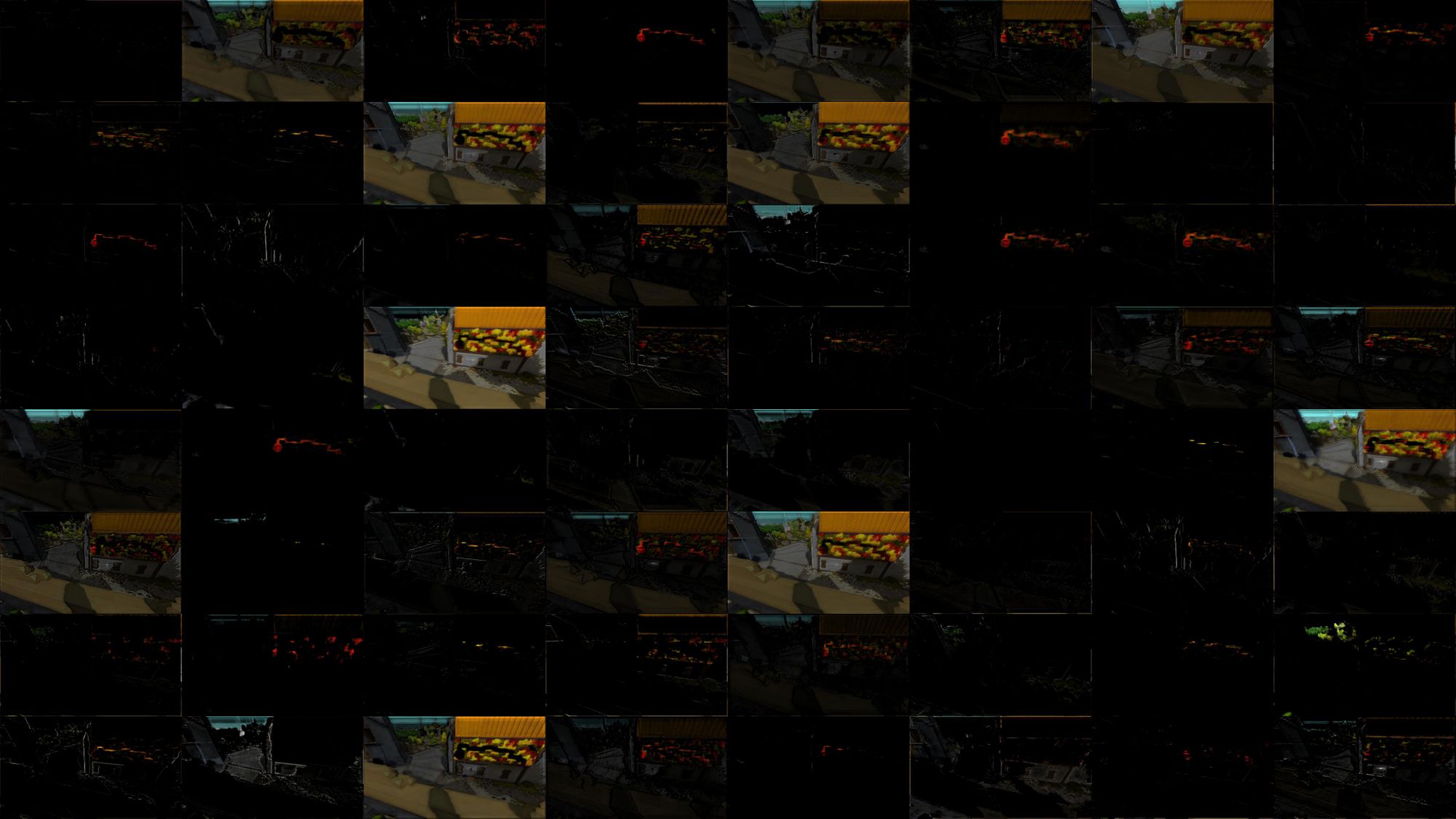 And as you get towards the end, you can see that the network has identified many meaningful portions of this image. Many cells have identified the puzzle pattern. Others call out sky, fence, or flowery regions.